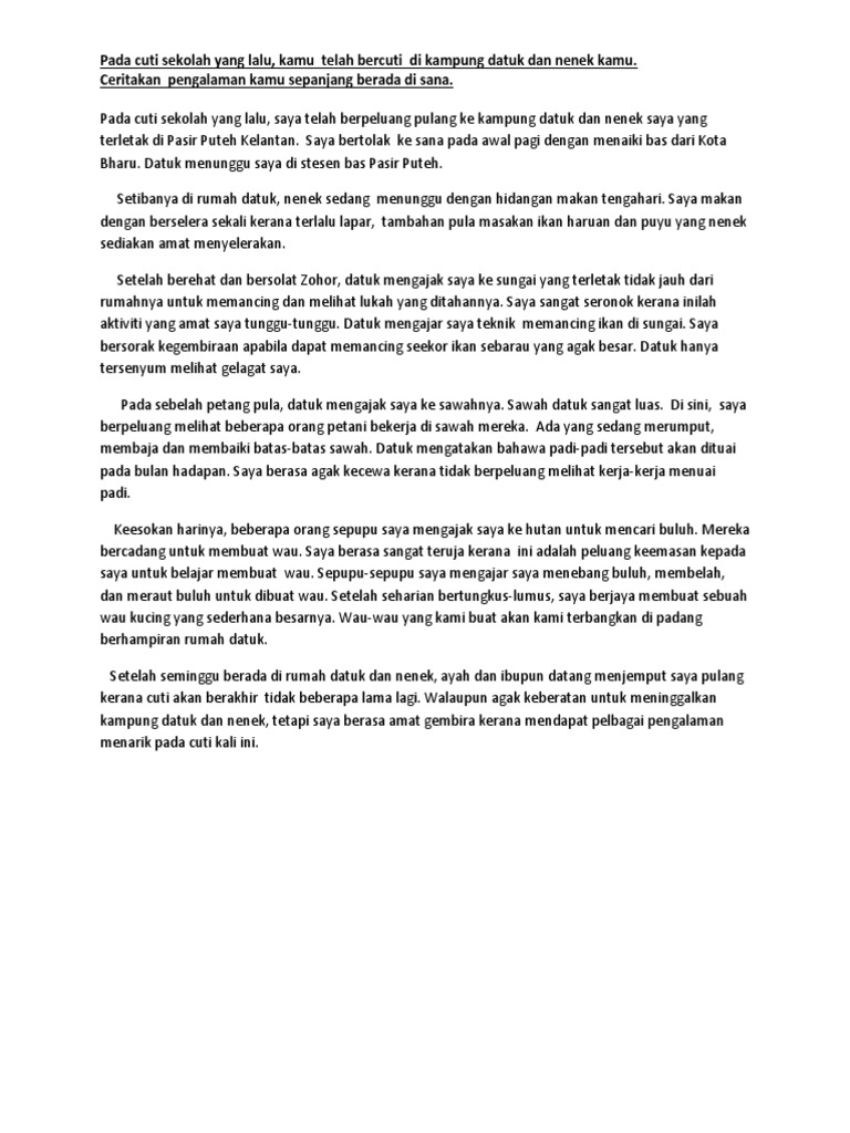 Karangan isi masa cuti doc www bmspm net contoh karangan spm aktiviti berfaedah ketika cuti sekolah sesetengah pelajar tidak mempunyai aktiviti course hero. Jadikan aktiviti ini untuk mengeratkan lagi silaturahim antara keluarga dan merehatkan tikiran yang dipenuhi. Oleh itu mereka akan memberikan wang kepada anak-anak.